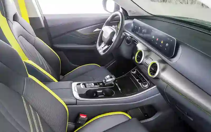 Дизайн – ничего особенного. Но как же играет интерьер с лимонными вставками! Нередко встречающиеся в «китайцах» кресла с интегрированными подголовниками снабжены внятной боковой поддержкой и регулировкой поясничного упора.