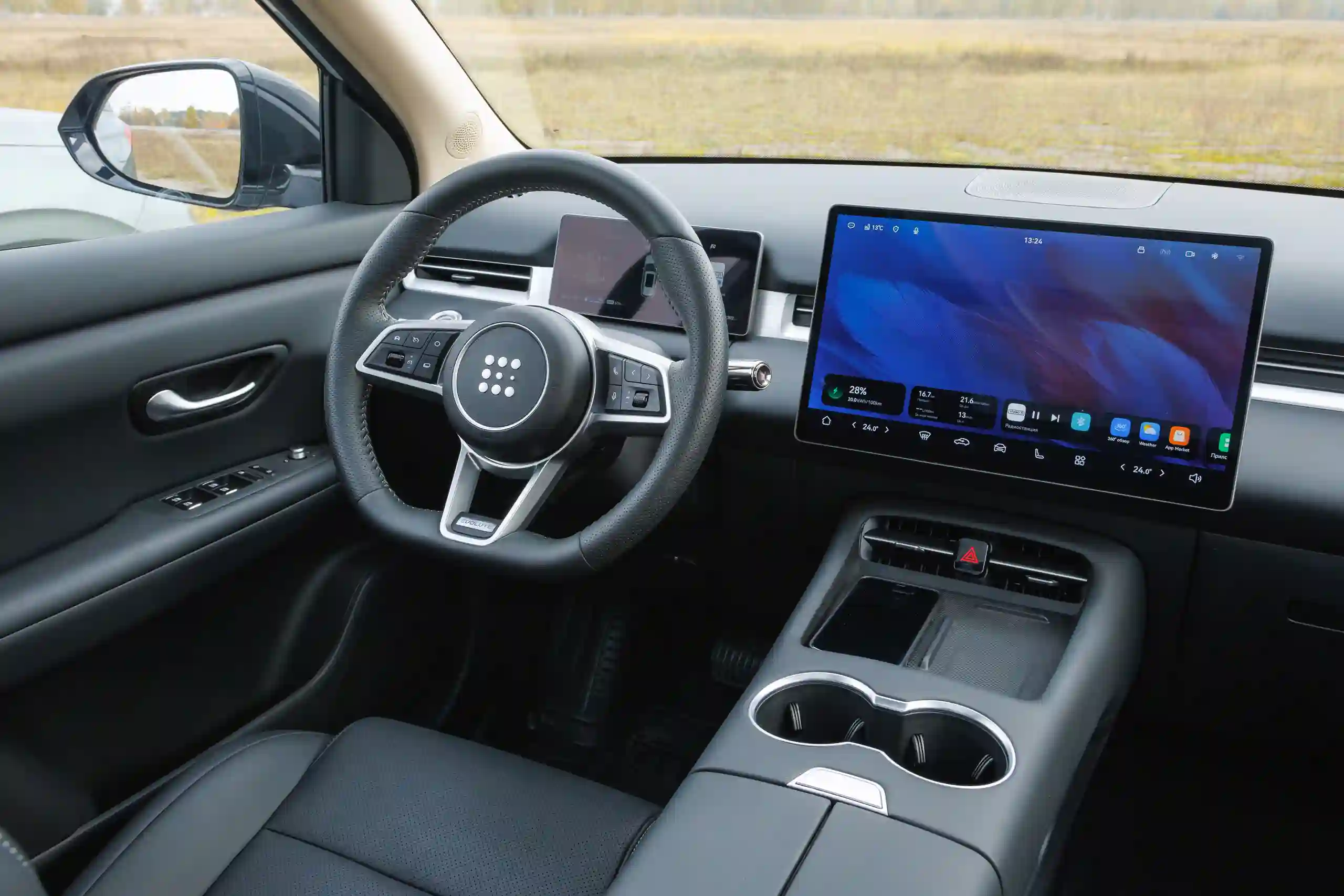 Длина окружности МКАДа — 109 км. Такой же запас хода на электротяге после полной зарядки батареи отображал и EVOLUTE i‑SPACE прошлого модельного года, хотя его практический максимум был 75-80 км. Чтобы проехать столько в чистом режиме, требовалось вести машину очень плавно и бережно. Но при снижении уровня заряда до 25% автомобиль всё равно сам выходил из режима EV и подключал генерацию.