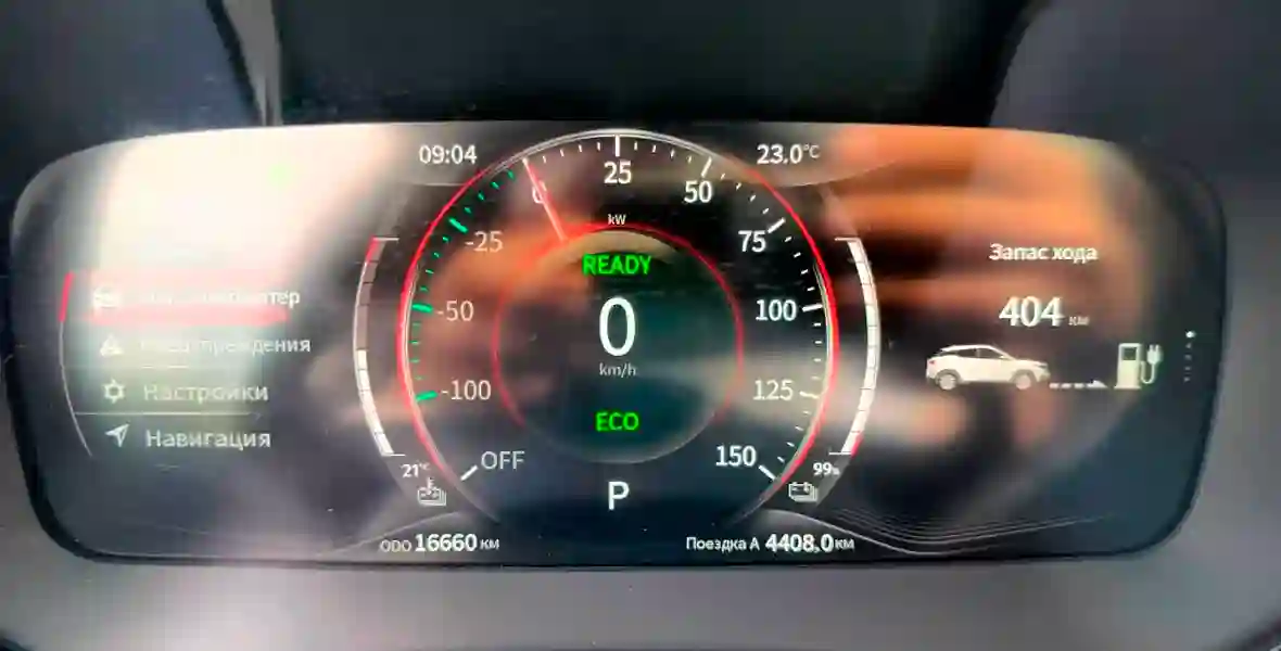 Соответствие заявленному пробегу, с корректировкой в 10-15%, при спокойном режиме вождения в рамках скоростного режима. По моему мнению электромобиль EVOLUTE i‑JOY, из заявленных 407 км полной тяговой батареи – 100%, в летний период времени (тест был в августе 2024 год) в пределах верхнего разрешенного скоростного порога, проезжает уверенно дистанцию в 350 км. Хотя коллеги получали и больший результат по пробегу. Но тут, всё индивидуально.